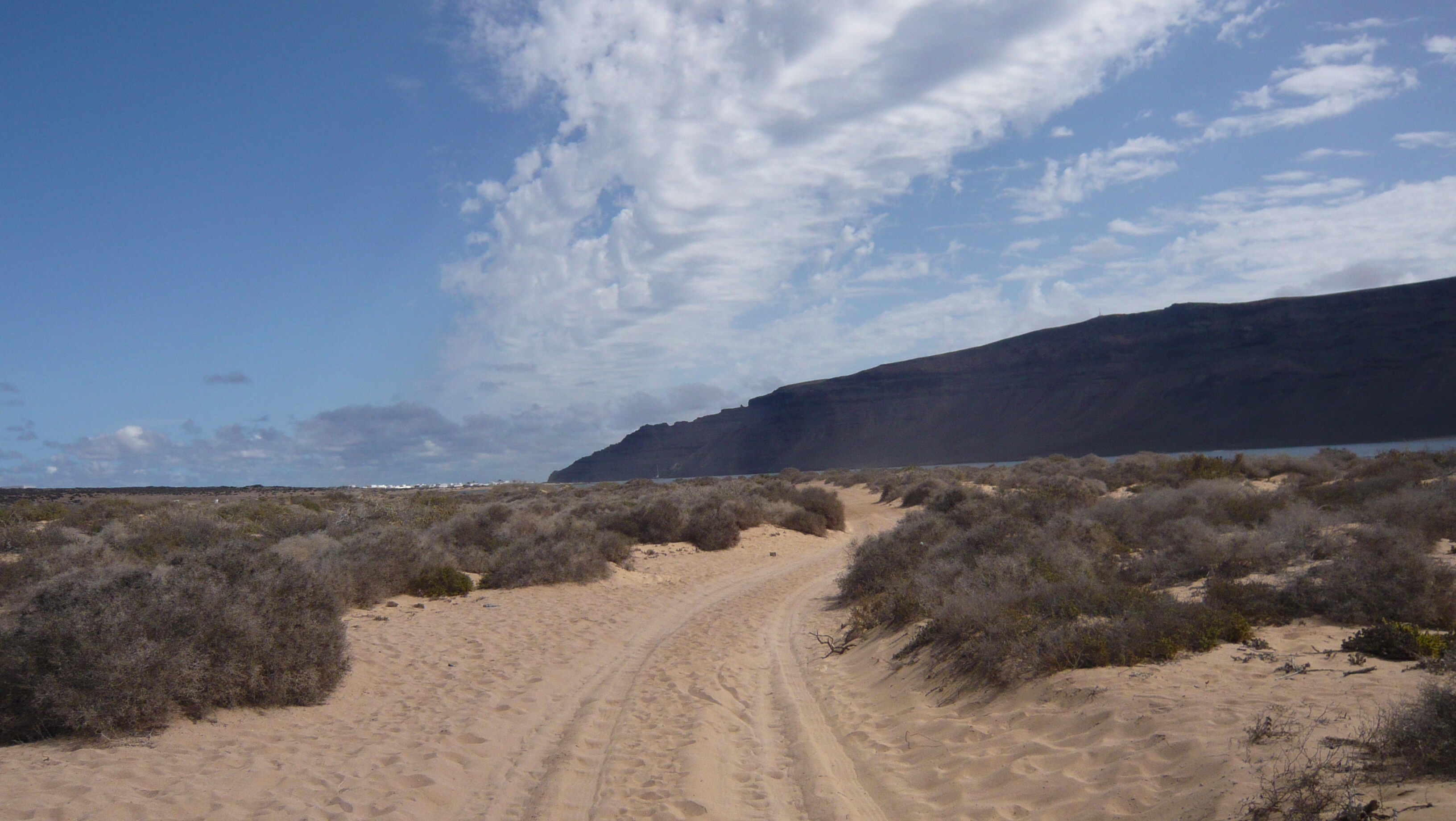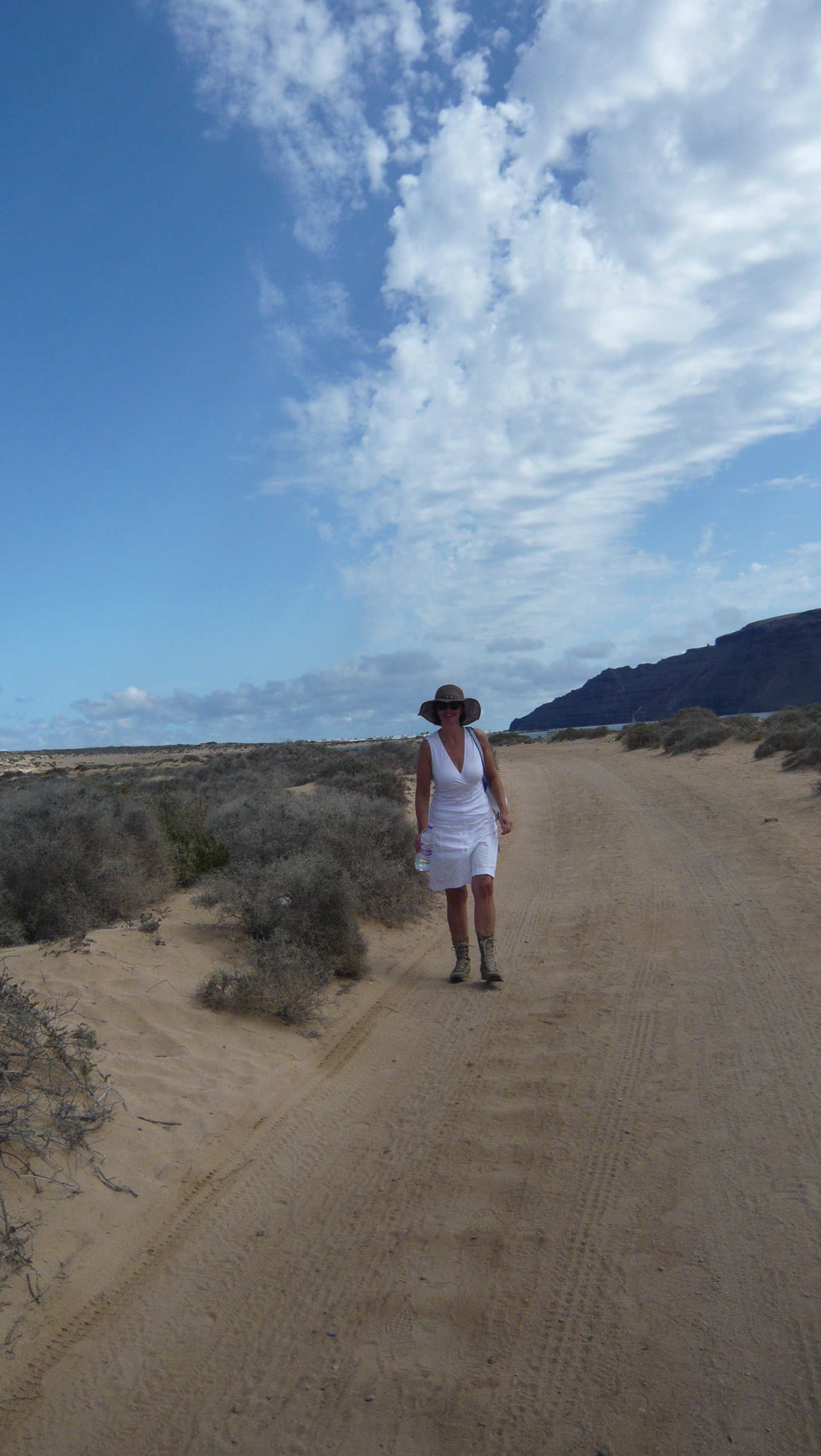Wir haben uns auf den ca. 45 minütigen Weg zum einzigen Dorf der Insel gemacht, erst am Meer entlang, es war gerade Ebbe und später querfeld ein geradewegs in Richtung Dorf. Meine „Wüsten- und Entdeckerstiefel“ haben sich wieder einmal als sehr sinnvolle Anschaffung erwiesen und da hier alles nur Sandpisten sind, waren sie genau das richtige Schuhwerk. Der Weg hat wirklich viel Spaß gemacht.